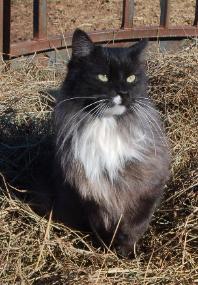 | Piss Pot Pete is the night manager of the horse barn, and in the daytime does his best to startle the dogs, and keep them on their toes. He keeps the feed room free of mice and harasses a bee or two. Rudy and PP (Pygmy Panther) work as a team and control most of the mouse activity outside the barn. All of our cats are volunteers that decided to stay. The only thing we require is that all their "luggage is unpacked" - in other words, all our cats are neutered! For one like them, please see your local animal shelter or Humane Society. |