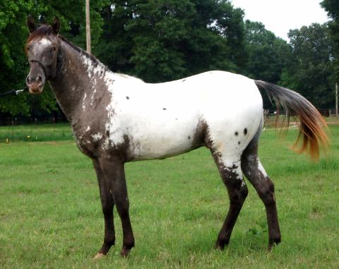 Few-spot Appaloosa that is confirmed Homozygous for the Black color gene (EEaa). He will be